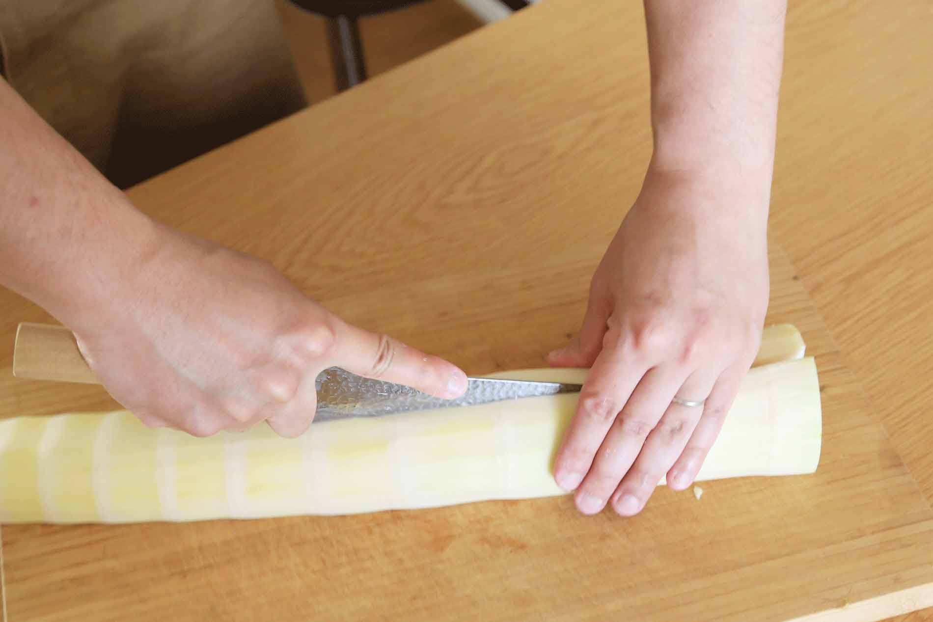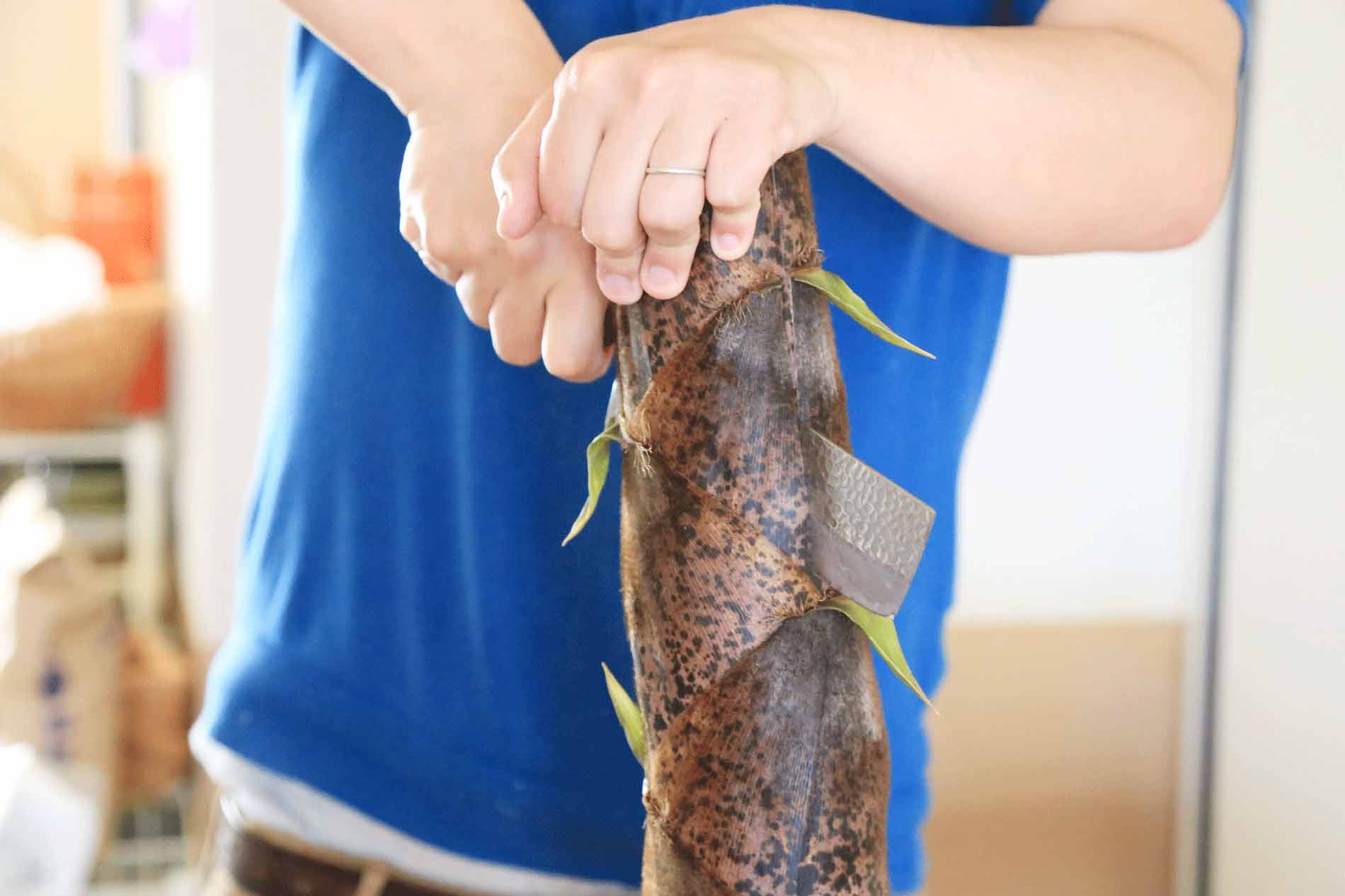 「夏休みの自由研究にしたい」ということで筍の伐採からいっしょに工程を進めていました。